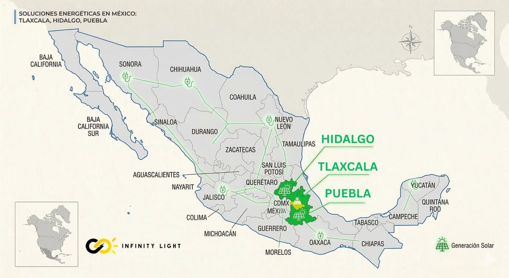 No somos una empresa distante; somos tus aliados locales. Nuestra presencia en los estados de Hidalgo, Puebla y Tlaxcala no es casualidad: conocemos perfectamente la radiación solar de la zona, los microclimas que afectan la instalación y, sobre todo, mantenemos una relación directa con las divisiones regionales de CFE para agilizar tus trámites de interconexión.